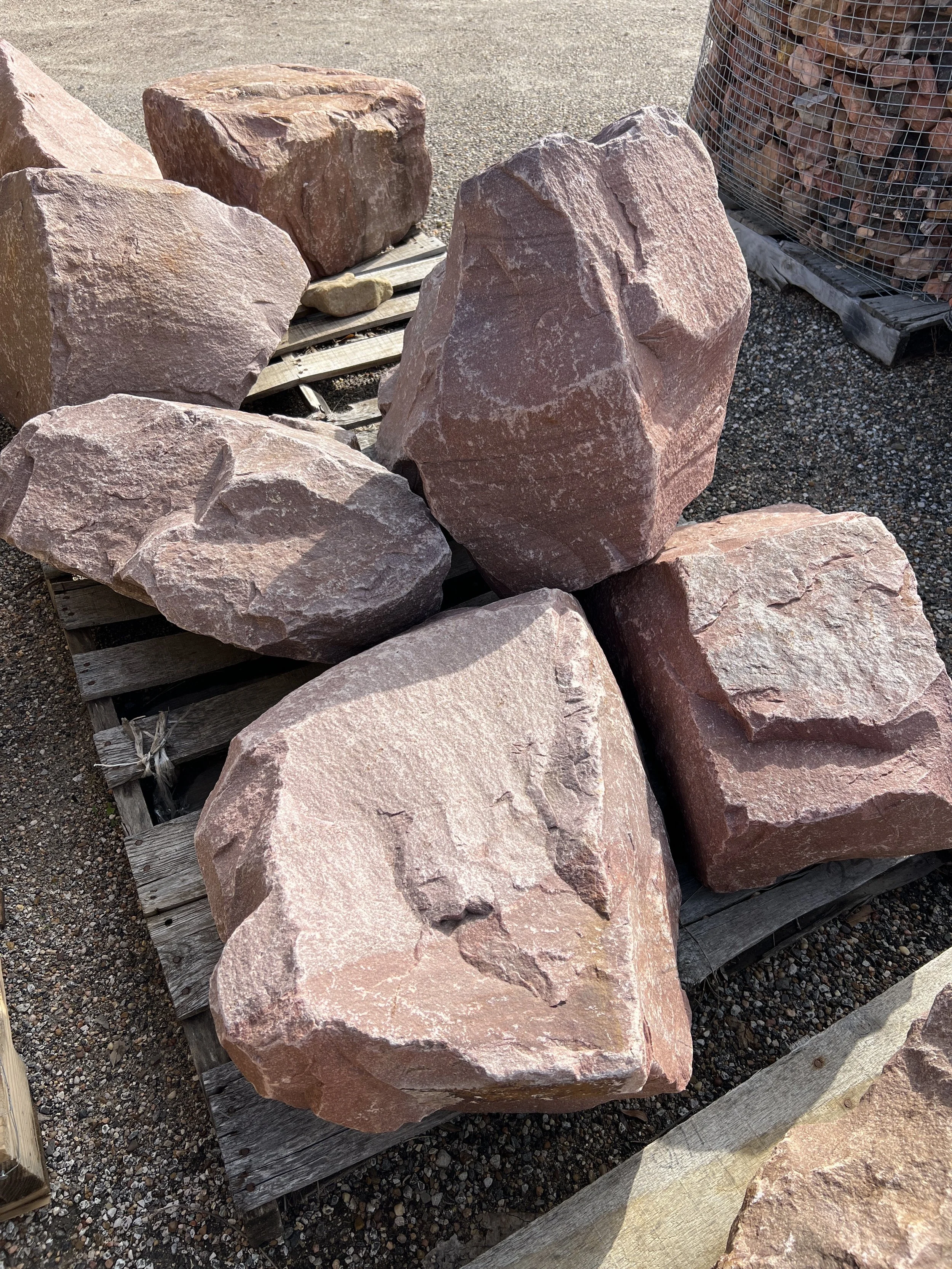 These boulders range in weight and size and can be handled by one person. Weight can range between 50 and 100+ pounds per boulder.